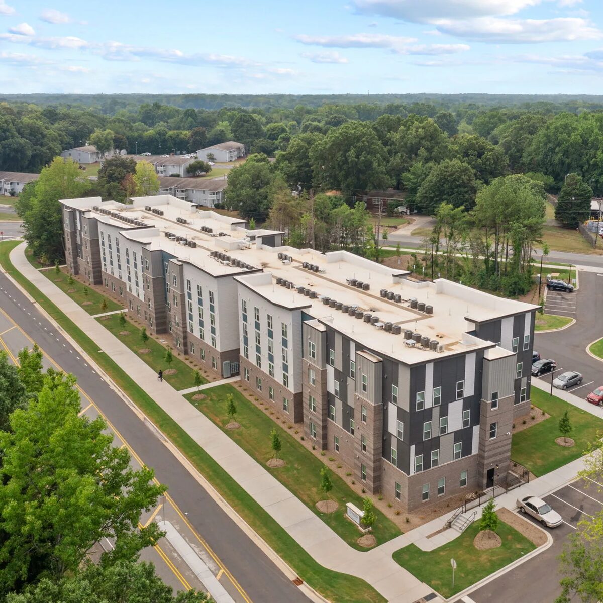 Ovata at Reedy Creek is a 78 unit complex designed for seniors 55 years of age and older featuring one and two bedroom apartments. This is a tax credit project that we are working together with our client NHE, Inc. to help address the soaring demand for quality affordable housing in the Charlotte area. This community is made possible with Low-Income Housing Tax Credits and support from the Charlotte Housing Trust Fund.
