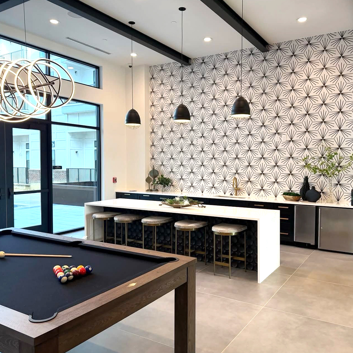 This 320,000 sq ft multi-family/mixed-use project consists of 274 apartments over 16,000 square feet of retail space. Residents have no shortage of amenities as they are able to enjoy a spacious club, lounge, fitness center, private pool, grill area and coworking spaces. A beautiful roof terrace with a full kitchen provides for grand views of the planned park and surrounding greenspace.